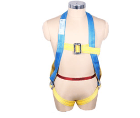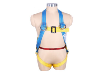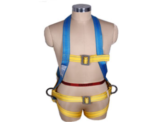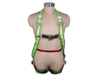 Full Body Harness Equipped with Adjustable Chest, Shoulder & Thigh Straps. It has 2 D-Rings on both side of the chest for attaching Fall Arrester.